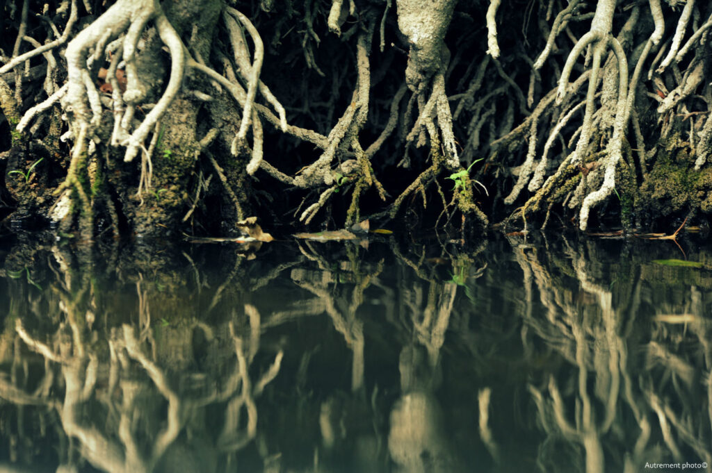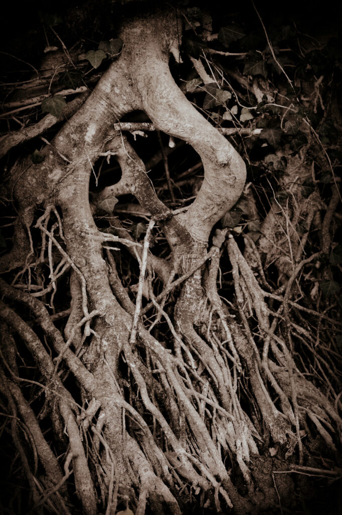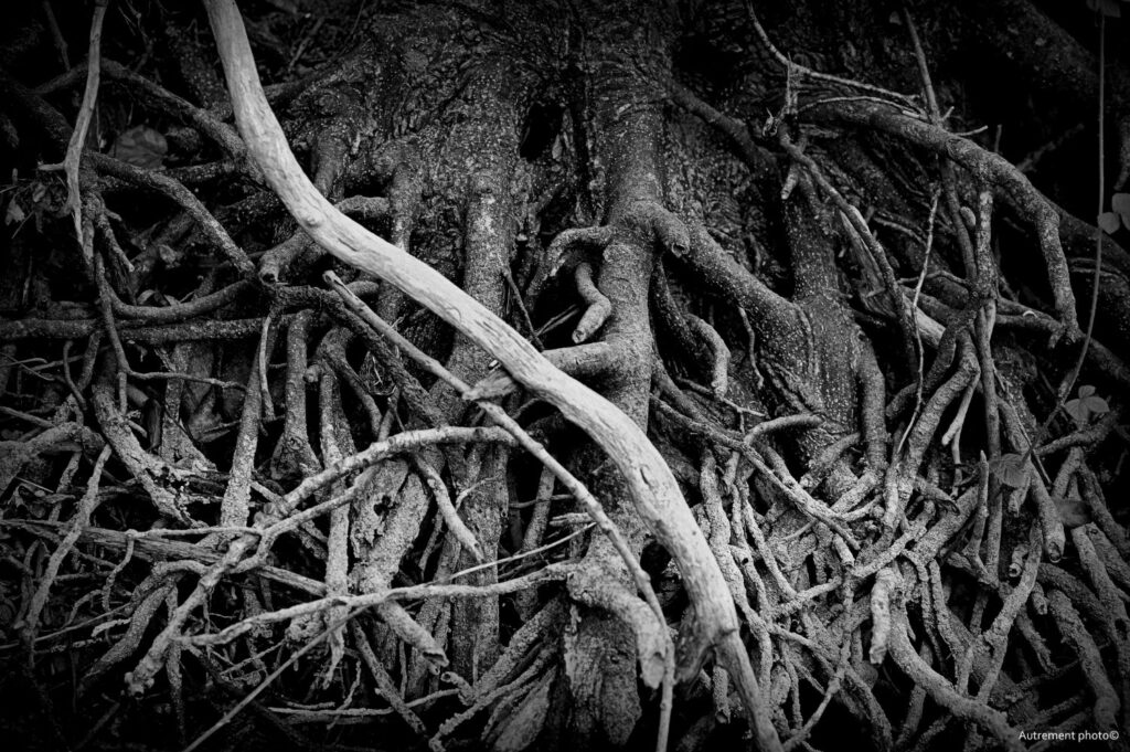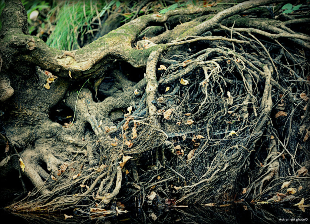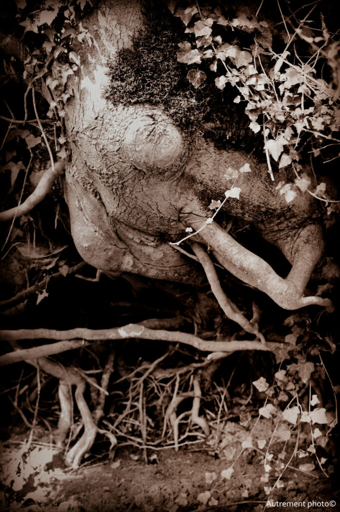 L’été 2022 a été le cadre de sécheresse importante, nous donnant cruellement la preuve du réchauffement climatique. Pendant plusieurs mois, j’ai arpenté cours d’eau et rivière. Ce que j’ai vu m’a attristé et fasciné en même temps. L’eau s’est retirée pour laisser à vue un décor que l’on ne connaissait pas. Torturées et semblant essayer de rejoindre le peu d’eau encore présente dans les fonds, les racines blanchies semblent appeler à l’aide. J’ai voulu montrer le désespoir qui ressortait de ces fonds asséchés et en même temps montrer une beauté qui habituellement se cache sous les flots.